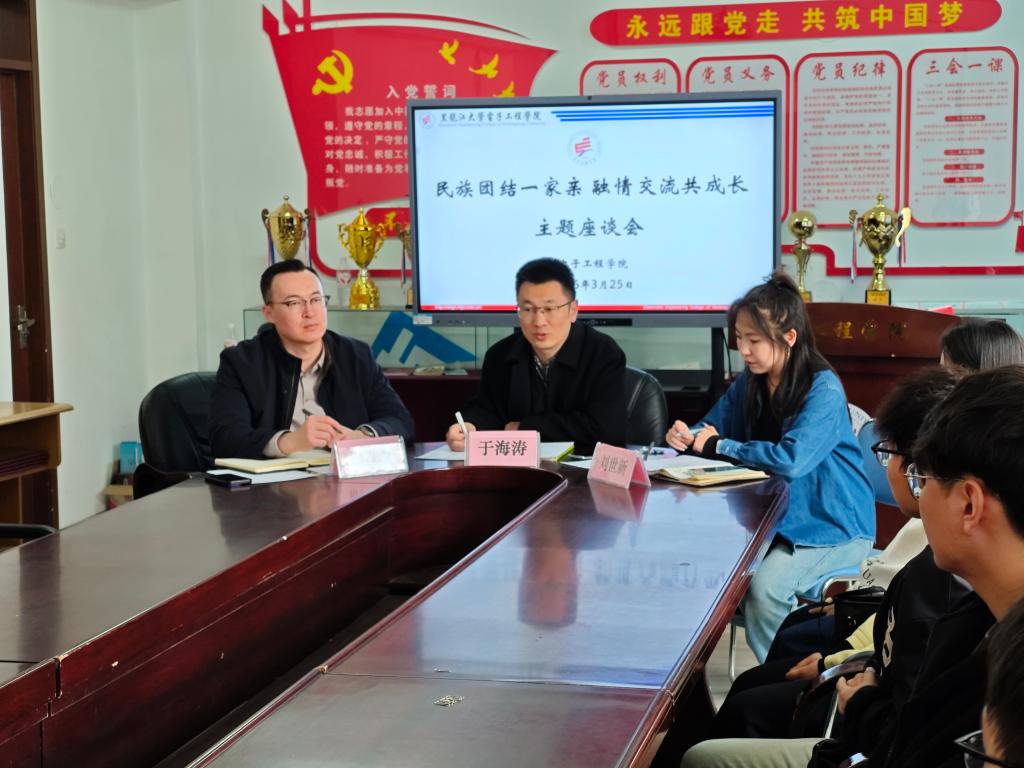 为加强与民族学生的沟通交流,促进各民族学生交往、交流、交融,营造“中华民族一家亲”的浓厚氛围,2026年3月26日,电子工程学院在A8栋318会议室举办“民族团结一家亲 融情交流共成长”主题座谈会。学院党委副书记于海涛老师、学生工作部专职辅导员布仁别克老师、学院辅导员刘世新老师及学院本硕各年级学生代表参加座谈。
