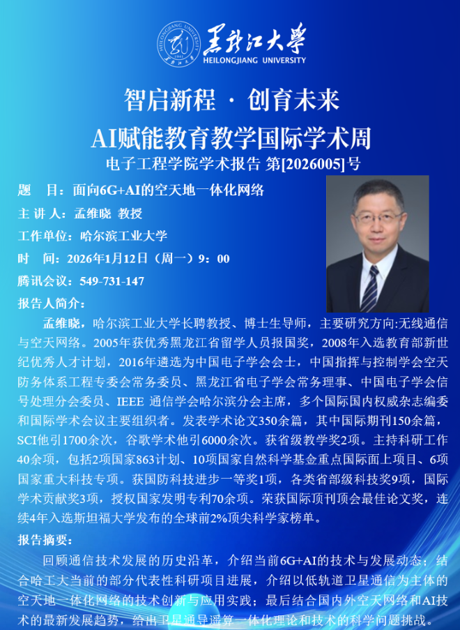 国际学术周暨电子工程学院学术报告 第【2026005】号