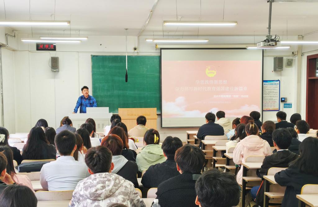 为进一步深入学习宣传贯彻党的二十大和二十届三中全会精神、团十九大精神,推动团员青年的思想理论水平和政治素养,保持和增强共青团的政治性、先进性、群众性,根据校团委《关于举办黑龙江大学第六十期共青团“推优”培训班的通知》安排,电子工程学院团委于2025年10月11日中午在汇文楼258开展专题团课培训。本次团课以“学思践悟新思想 奋力书写东北全面振兴青春篇章”为主题,由学院团委书记谢洪宝主讲。