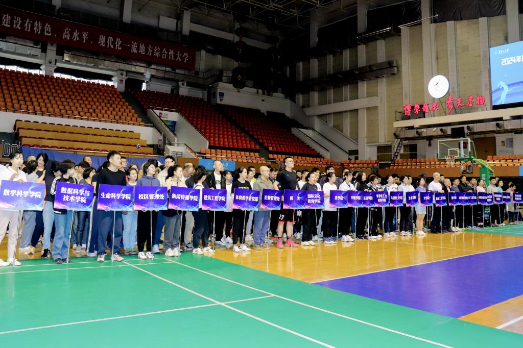 闭幕式上,裁判长姚广军宣布比赛成绩:体育教学研究部、后勤管理处获得并列第一名,艺术学院获得第二名,数据科学与技术学院获得第三名,经济与工商管理学院、电子工程学院、化学化工与材料学院、数学科学学院、水利电力学院分获四至八名。