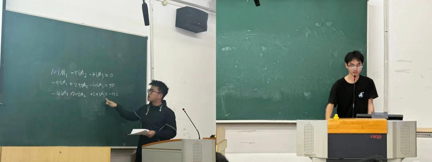 徐杨同学首先对电路分析第二篇的基本知识进行了梳理,接着重点讲解了运用三要素法解决动态电路的相关问题。讲解过程中配合相关习题来加深同学们对三要素法的理解,尤其强调在运用三要素法解决问题时必须认真审题,针对不同的题型选择合适的方法来解决。