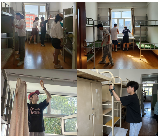 学长学姐们各司其职、团结合作,共同为我院2023级新生营造一个良好的宿舍环境,充分展现了我院师生“奉献、团结、互助、友爱、共进”的良好精神风貌。清扫完毕,辅导员老师及学生公寓辅导员老师对每间寝室逐一验收,确保宿舍环境达到标准。透亮的窗户、整齐的桌椅、洁净的地面,温馨的环境都将伴随着学长学们姐的温暖等待着新生的到来。