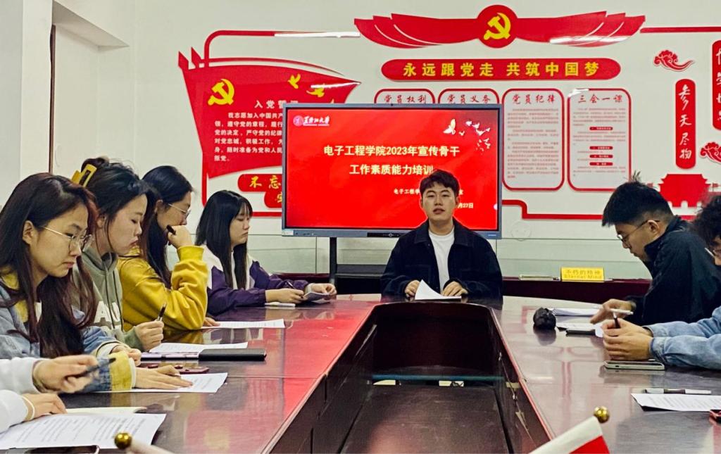为贯彻实施《关于进一步加强和改进新形势下高校宣传思想工作的意见》,进一步规范我院宣传媒体工作,加强学生干部队伍的凝聚力、战斗力,提高宣传骨干的工作水平及综合素质,2023年3月27日学院开展2023年宣传骨干工作素质能力培训。本次宣传骨干培训由电子工程学院团委书记、2021级辅导员谢洪宝主讲,电子工程学院团委副书记、2021级辅导员于仪及学院各学生组织宣传工作主要负责人参加本次培训。