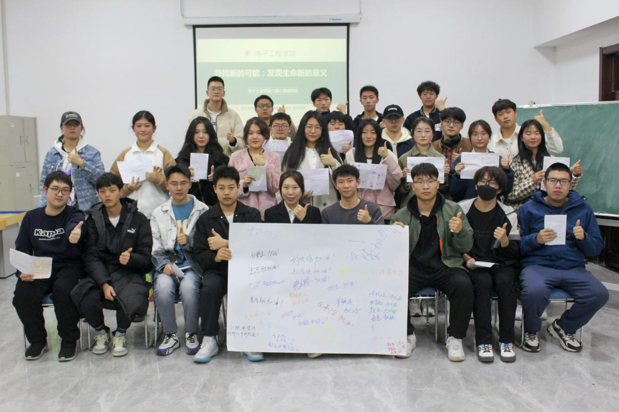 通过此次团体心理辅导,不仅使同学们对生命有了更深刻的认识,更有利于学生把握生命的意义、感恩生命、珍惜生命。电子工程学院二级心理辅导站将继续开展学生喜闻乐见的心理健康教育活动,持续关注学生心理动态,为培养德智体美劳全面发展的社会主义建设者和接班人而努力奋斗。