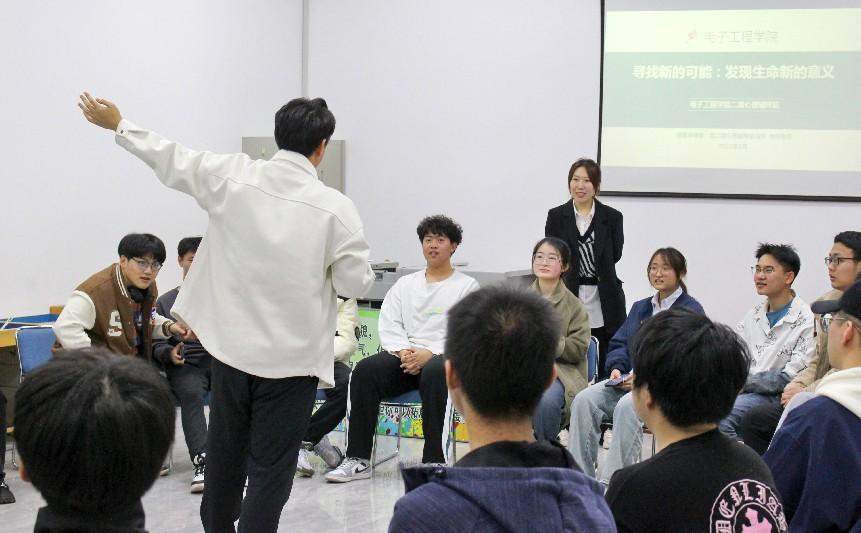 为帮助电子工程学院学生更好地适应大学生活,提升自信心,加深对生命意义的理解,学院二级心理辅导站于2023年3月19日开展以“寻找新的可能:发现生命新的意义”为主题的团体心理辅导。本次活动由学院二级心理辅导站站长肖萌带领,2022级电子信息类15班全体同学参与。
