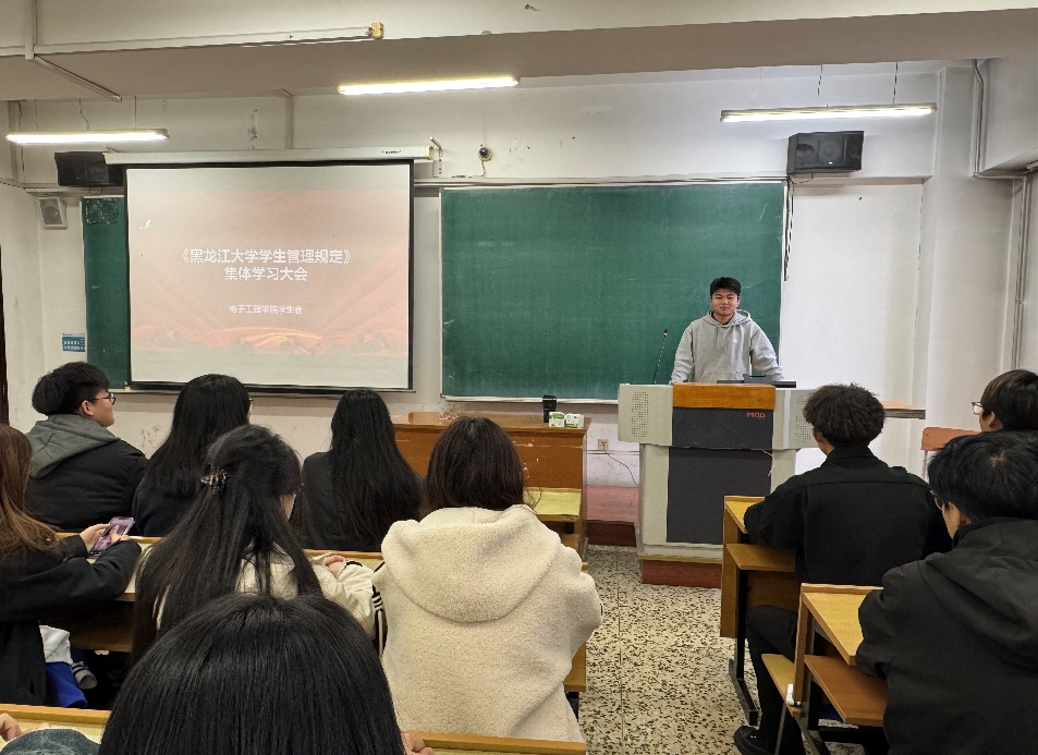 为进一步强化规范管理,贯彻落实国家教育方针,切实推进学风建设,增强学生对校规校纪的认识与理解,营造遵规守纪、风清气正的校园氛围,电子工程学院学生会于2024年10月18日在汇文楼325开展《黑龙江大学学生管理规定》集体学习大会。