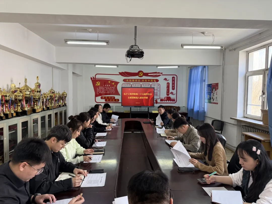 为强化学生组织的队伍建设,优化完善组织结构,严格筛选组织人才,有效提高组织效率,依据《电子工程学院学生会章程》和《黑龙江大学电子工程学院第二十七届学生会换届选举办法》,学院学生会主席团候选人换届面试考核于2025年3月14日中午12:10在A8-318会议室进行。