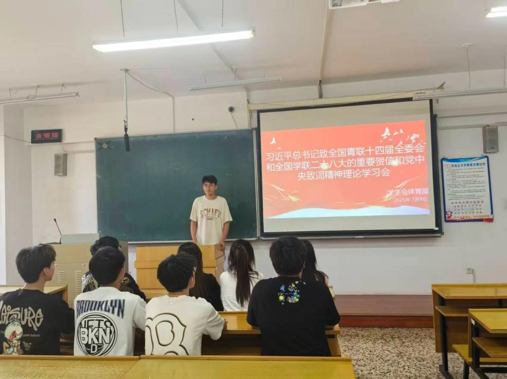 近日,电子工程学院学生会体育部组织开展了理论学习会,此次会议以习近平总书记致全国青联十四届全委会和全国学联二十八大的重要贺信,以及党中央致词精神为核心主题。会议期间,李浩昱引领体育部全体成员,深入学习领会了重要贺信和党中央致词的深刻内涵。通过此次学习,大家真切感受到习近平总书记对青年成长的深切关怀,也更加清晰地认识到当代青年所肩负的使命与担当。