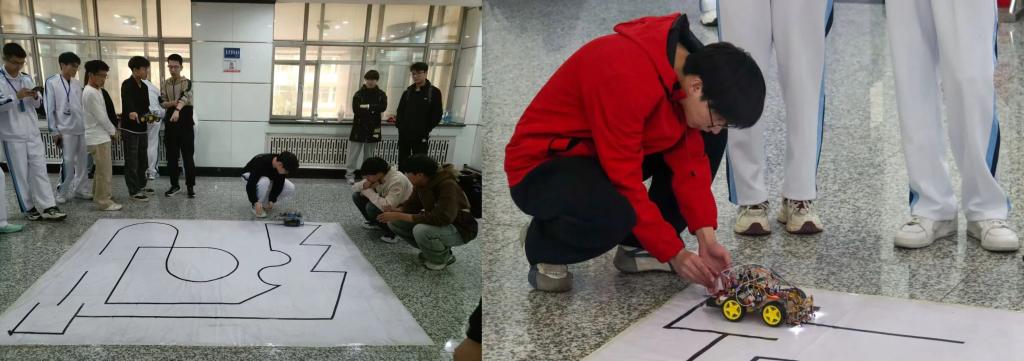 赛前测试阶段,各小队在测试场地进行场地实测验证小车转向灵敏度、速度等,进行参数调试。各队选手们充分发挥团队协作精神,共同攻克了一个又一个技术难题,如电控车偏离预定路径、传感器故障、程序运行异常等,最终实现了对电控车的精准控制。