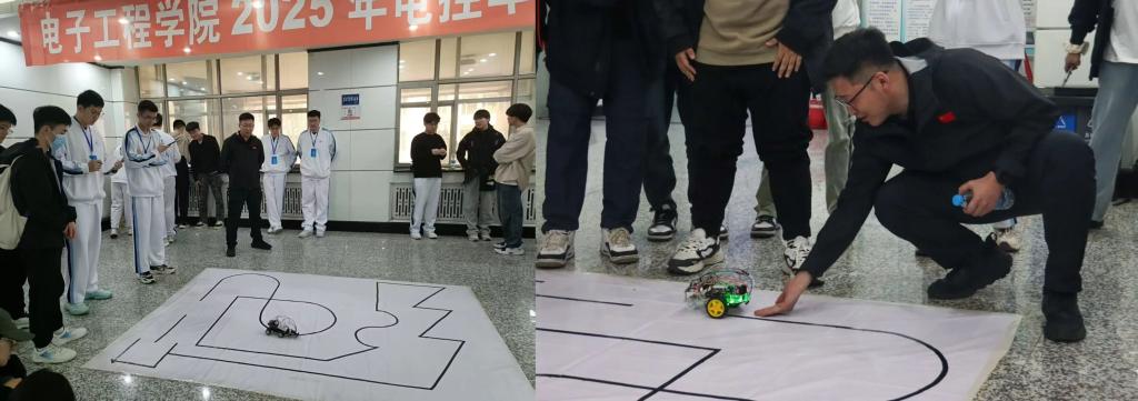 为进一步加强学风建设,营造“志远行实、学而不厌”的优良学风,提升学生创新实践能力,助力推动我校、我院教育教学质量迈向新高度。根据《电子工程学院2025年“学风建设年”活动实施方案》的具体要求,学院科技创新创业协会、学生会于2025年4月23日实验楼2楼成功举办第一届院电控车循迹大赛。