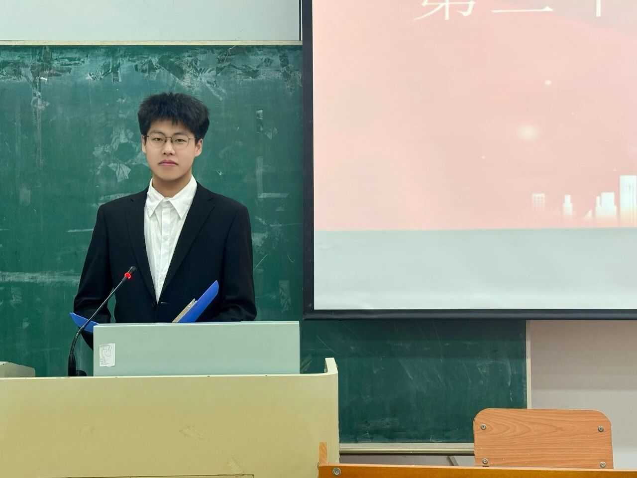 第二十六届院学生会执行主席丁威同学代表第二十六届学生会发言,总结了过去一年的工作并提出对未来工作的期望。