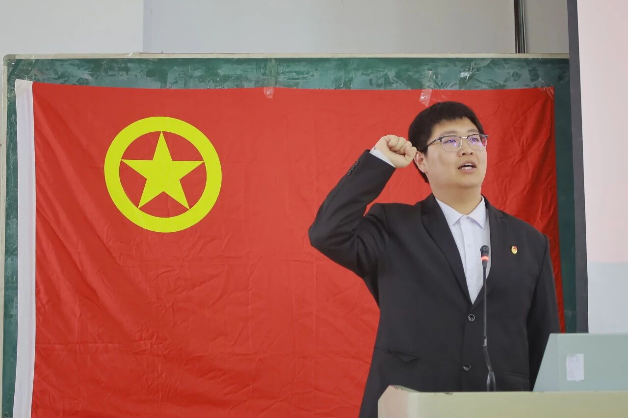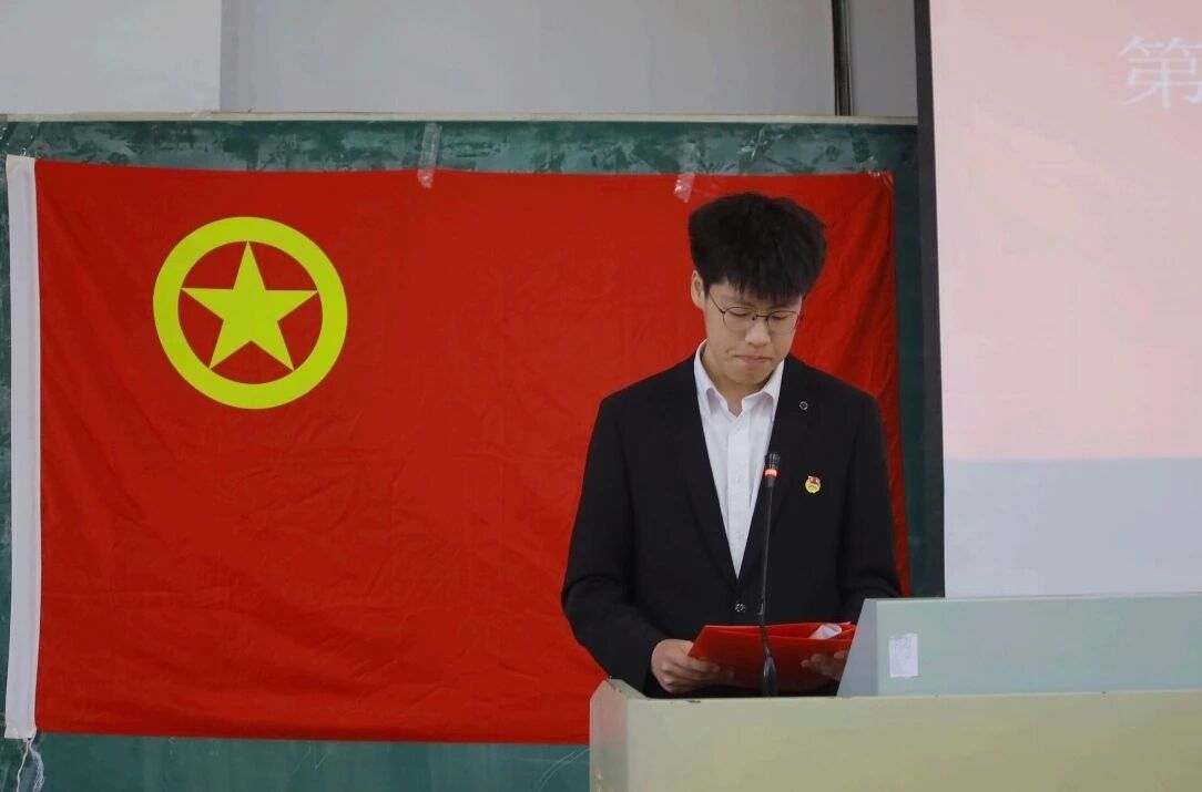 学生会执行主席蒋宇鑫带领同学们重温入团誓词,不忘初心,牢记使命。在新的功能型团支部委员会的带领下,学院学生会将更好地服务同学,推动学院的发展。