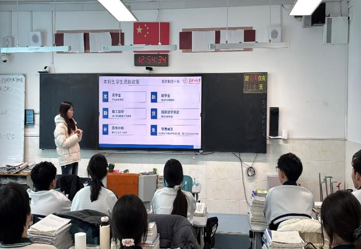 2026年2月6日,杨若林同学来到河北省博野县博野高中开展“助梦启航,资助同行”主题宣讲活动,她采用 “政策解读 + 案例分享 + 互动答疑”三位一体的宣讲模式,政策解读环节,杨若林同学借助精心准备的 PPT 演示文稿,由宏观到微观、由理论到实践展开讲解。她首先从国家层面的资助政策体系入手,用简洁清晰、通俗易懂的语言,系统阐释各项资助政策的背景、适用对象与覆盖范围,并通过直观清晰的对比图表,直观展示不同资助项目的资助标准、申请条件与办理流程,让同学们一目了然、易于理解。确保内容贴合当地学子实际需求。