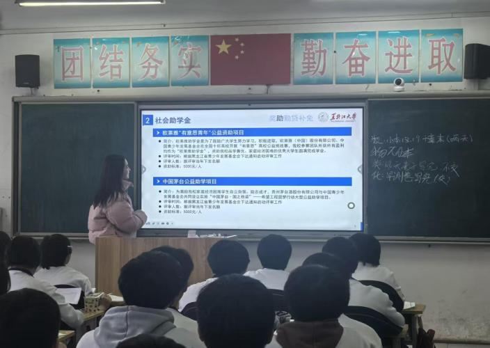 2026年1月26日,刘赛琪同学以“国家资助政策校园行”为主题,为百余名学弟学妹带来了一场深入翔实的专题宣讲。她立足国家助学政策顶层设计,以“政策惠民、助学兴邦”为切入点,系统且细致地解读我国学生资助政策体系的“三个全覆盖”核心内涵。她的讲解条理清晰、重点突出,用通俗的语言拆解政策核心,让学弟学妹们深刻认识到了国家政策的普惠性、系统性与暖心温度,也深刻理解了“不让一名学生因家庭经济困难而失学”的庄严承诺与民生担当。