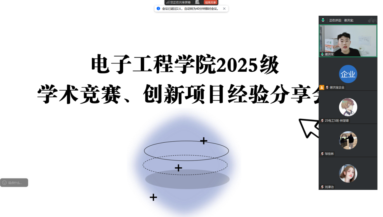 为深入贯彻落实学校“学风建设年”专项工作部署,进一步加强学院学风建设,切实营造“志远行实、学而不厌”的优良学风,培养我院学生创新精神、创业意识和创新创业能力,搭建青年学子竞赛经验交流平台,2026年1月6日,学院依托线上平台开展学术竞赛、创新项目经验分享会,本次分享会由学院团委书记、2025级辅导员谢洪宝主持,学院2021届毕业生孙立明和2025届毕业生邹佳林主讲,学院2025级学生参加。