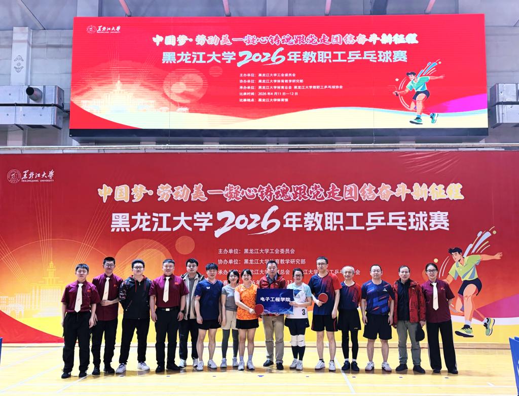 为深入贯彻落实全民健身国家战略,丰富教职工文体生活,增强教职工身体素质与团队凝聚力,黑龙江大学举办全校教职工乒乓球比赛。电子工程学院教职工代表队以顽强的拼搏精神和默契的团队协作,一路过关斩将、力克群雄,最终斩获2026年教职工乒乓球比赛团体第一名,同时在个人赛中多点开花、再创佳绩,充分展现了我院教职工昂扬向上的精神风貌与团结奋进的集体力量!